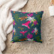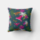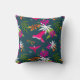Hummingbird Tropical Flower Print Sierkussen. Mooie grafische afdruk van roze en paarse Hummingvogels die in de tropische bloemen en palmbladeren vliegen en voeden. Op een donkere blauwgroen blauwe achtergrond. Ideaal voor het ophelderen van een gewone kamer. Andere kleuren die in mijn winkel beschikbaar zijn.