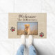Deze leuke Custom Welcome Deurmat - sterren uw hond - en vraagt zachtjes dat uw gasten ook hun "poten" vegen voordat u uw mooie huis binnengaat. Warm en uitnodigend — voor jezelf of als cadeau. Interessant lettertype voor kalligrafie — eenvoudig te personaliseren. Als u vragen over uw ontwerp hebt, moet u een chat of e-mail sturen naar charmdesignstudio@rcn.com en we helpen u graag verder.