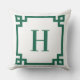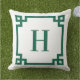 Hunter Green en White Griekse Key Border Monogram Buitenkussen