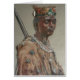 Kleurenpotloodtekening van een jager met zijn pistool met buskruit en gelukscharmes. Door Melissa Enderle