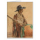 Kleurpotloodtekening van een traditionele jager-griotmuzikant die de harp van de jager speelt in Bamako, Mali. door Melissa Enderle