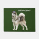 Deurmat met husky hondentekening en tekst - Welcome Home= Eenvoudig om de achtergrondkleur te veranderen en je eigen tekst toe te voegen.