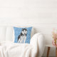 Dit ongebruikelijke kussen kenmerkt mijn schilderij van een zwarte en witte Husky tegen een achtergrond van lichtblauwe sneeuwvlokken op een blauwe achtergrond. Deze gooiende kussen zouden een mooi cadeau of een opvallend toevoeging aan elke kamer zijn.