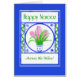 Een Perzische nieuwjaarsgroetkaart, 'Over de Miles', met een blauwe en witte pot van roze hyacinten aan een blauwe grens en Happy Norooz in groen, van een schilderij van de waterverf van Judy Adamson. Een aangepaste front-versie van dit ontwerp is ook beschikbaar en u kunt het binnenbericht van deze kaart desgewenst personaliseren.