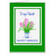 Een Perzische nieuwjaarsgroetkaart voor een oom, met een blauwe en witte pot met roze hyacinten aan een groene grens en Happy Norooz in blauw, van een waterverf schilderij van Judy Adamson. Een aangepaste front-versie van dit ontwerp is ook beschikbaar en u kunt het binnenbericht van deze kaart desgewenst personaliseren.