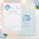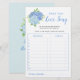 Dit vrijgezellenfeest spel is een liefdesliedspel. De gastheer speelt fragmenten uit liefdesliedjes. De gasten schrijven de naam en de kunstenaar op de kaarten. De punten worden genoteerd voor elk correct antwoord. De speler met de hoogste punten wint een prijs. Deze kaarten zijn voorzien van een waterverf blauwe hydrangea floral design. Pas deze kaarten aan met de naam van de bruid op de rug. Overeenkomende objecten beschikbaar.
