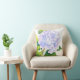 Kussen bedrukt met Hydrangea bloem in violette, blauwe, groene, gele om witte achtergrond, van originele waterverf schilderij.