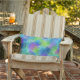 Een abstract in tinten van groen, paarse, lavendel, blauw en aqua genade dit kussen gooien.