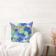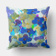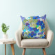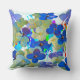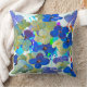 Deze kunstafdruk toont een patroon van hortensia bloeit in verschillende kleuren tegen een licht cyaan doek met een gladde verf spatten overlay.