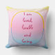 I am loved, loving, and lovable, is the affirmation on yellow, pink, and blue blends, in a yellow and blue circle, is printed on custom pillows. The text can be customized on the template form. The design is printed on both sides. Be sure to customize text on both sides. Thank you for shopping at PositiveAffirmation on Zazzle.