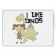Een prehistorisch meisje en een glimlachende dinosaurus met tekst die me als Dinos leest op dinosaurus T-shirts, lijfpakken, mokken, kaarten, canvas tassen, stickers en andere dingen waar kleine dinosaurusliefhebbers zeker van zullen zijn!