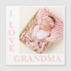 Sweet-fotokaart met I L-O-V-E Grandma typografie in roze vorm. Voeg je eigen foto- en geboortestatistieken op de achterkant toe. Zo schattig!