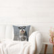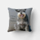 Schattige miniatuur schnauzer op het natte zandige strand. De tekst luidt "I Love Mini Schnauzers" op de voor- en achterkant van de kussen.