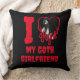 This gothic throw pillow says 'I Love My Goth Girlfriend' in a red horror font - you can edit the text as needed. Also has a red dripping silhouette of a bloody heart with a photograph template, which you can replace with a photo of your goth girlfriend.