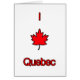 Een variatie op het I Heart thema. Het afbeelding gebruikt een Canadees esdoornblad in plaats van het normale hartsymbool. Dit ontwerp zegt: "Ik (Canadese esdoornblad) Quebec. De letters en het bladsymbool zijn rood met een zwarte rand of lijn. Dit is een geweldig cadeau voor iedereen die een trotse Canadees en Quebec is.