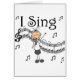 Muziekthema T-shirts, canvas tassen, kaarten, mokken, magneten en andere muziekobjecten met een meisjeszanger voor een stokkleurig teken en tekst die "I Sing" luidt!