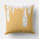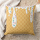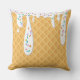 Deze aangepaste gooi-kussens is voorzien van een roomvormig ijsvormig ontwerp. De achtergrond is een wafelkeegenpatroon. Witte vanille vorst druipt met regenboogsprinken van bovenaf.