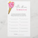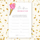 Dit vrijgezellenfeest met een ijsthema is versierd met waterverf bloemen en een ijskegel. In de tekst staat "She's been scooped up!" in een stijlvol roze schrift. Waterverf ijsje met bloemetjes en fruit.