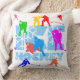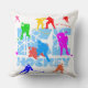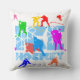 De sneeuwvlokken versierden Ice Hockey-tekst van blauwe kleur en kleurrijke afbeeldingen van het silhouet van hockeyspelers. Grappig, elegant, één-van-een-aardig door kussen voor iedereen. Speel hockey, geniet van plezier en ben blij!