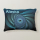 Een blauwachtig fractaal afbeelding dat lijkt op een zwenkende groep walvissen onder poolijs; misschien beluga of minke walvissen die vaak de polen gebruiken. De tekst "Alaska" staat in gloeiend blauw. Voeg extra tekst aan de achterkant toe.