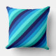 Een 20 "x 20" gooi kussen met een cool patroonontwerp van diagonale strepen in marineblauw, kobaltblauw, hemelsblauw, ijzige munt blauwgroen en licht turquoise.