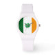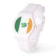 Groene, oranje en witte driekleur van de Ierse vlag met in het midden een klaver.