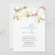 Deze bloemenbruids doucheuitnodiging heeft de bruid to be's naam gezet met het woord "Something Blue before I Do" in een stijlvolle handgeschreven scripttypografie met evenementdetails in een klassiek houtskoolgrijs serif lettertype op een heldere witte achtergrond met een top boarder van waterverf witte magnolia bloemen. De uitnodigingskaart keert om naar een gratis tropische turquoise kleur. Een botanische maar elegante keuze voor theefeest, lunch of brunch en bubble vrijgezellenfeest in het Zuidelijke klimaat of Florida. Ga naar www.zazzle.com/dotellabelle om de volledige suite van Victoria Grigaliunas te bekijken
