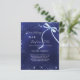 Een marineblauwe achtergrond, versierd met blauwe faux glitter en een boog. De blauwe kleur is ongelijk. Personaliseer en voeg een naam en partijgegevens toe. Tekst: Iets blauw voor ik het doe. 1 vel = 1 bruids douche uitnodiging bedrukt rand tot rand.