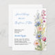 Een chique witte achtergrond. Versierd met een wilde bloemen in roze, blauw, geel. Personaliseer en voeg de naam van de bruid te zijn en partij details. Tekst: Iets blauw Voordat ik het doe. 1 vel = 1 uitnodiging bedrukt rand tot rand.