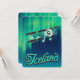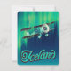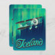 IJsland Reisposter van de noordelijke lichten en een licht vliegtuig dat voorbij vliegt.