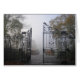 Grote ruw ijzerpoort en mistweg