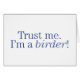 De Vertrouw me. Ik ben een Birder design is geweldig voor de vogelwachter of vogelliefhebber in je leven! Vogels en bloemen is het nummer 1 van het vogel- en tuinmagazine in Noord-Amerika. We zijn trots op de viering van de "schoonheid in je eigen achtertuin" die een breed scala aan onderwerpen bestrijkt, zoals vogelkijken, het aantrekken van kolibrie, het bouwen van vogelhuizen, het tuinieren voor vlinders, het voeden van vogels voor minder, het telen van veggies, verhalen over de geboortervaring van lezers, plus nog veel meer. We beseffen dat tuinders en bergers vaak dezelfde belangen hebben. Het is logisch - als je vogels naar je achtertuin wilt lokken, zijn tuinieren en landschapsarchitectuur een geweldige manier om het te doen. En als een tuin in bloei is, door de beweging van kleurrijke vogels en hun vrolijke liedjes toe te voegen, komt er een achtertuin tot leven. Bezoek www.birdsandblooms.com/zazzle om meer te zien!