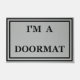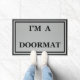 Ik ben een DEURMAT Welcome Mat. Zwarte letters, zwarte randen, lichtgrijze achtergrond.