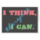 Hier is je volgende mantra of motto - "Ik denk, daarom kan ik", een herschrijving van het beroemde citaat van Descartes: "Ik denk; daarom ben ik." Nadat het is verzonden, kan dit positief denken citaat voortleven in een lijst of gemonteerd op een memobord. Binnenin is wit met een zalmroze achtergrond voor uw bericht.