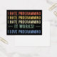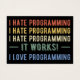 Fun design, ideaal voor iedereen die programmeur, technologiespecialist, coder, computeringenieur, IT-student of iemand die graag codeert! Ik haat programmeren. Het werkt! Ik hou van het grappige citaat van Programming voor programmeurs, technologiefhebbers, coders, en ontwikkelaars. Hou je van je werk in de technologie en deel je van de technicus? Benadruk je stijl met deze coole kunst! Geweldig geschenk voor een IT-student, technicus, technicus of computertechnicus.