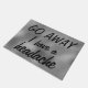 Wat dacht je van dit coole, zwarte en grijze kleurstofdoormat dat zegt: "GA AWAY I have a headache", in enorme zwarte letters geschreven?