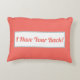 Ik heb je rug. Voeg deze aantrekkelijke kussen toe aan uw collectie. In de schaduwen van koraal en wit zal het er in veel interieurs goed uitzien. Gebruik het enkel voor decoratie of als lumbale kussen voor comfort. Verander de woorden of kleuren/kleuren zoals u wilt. Bewaar het voor jezelf of geef het als cadeau aan iemand speciaal. Het maakt een stijlvolle en humoristische uitspraak!