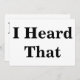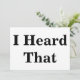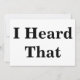 Standaard witte kaart met "Ik hoorde dat" in een groot vet zwart lettertype aan beide zijden.