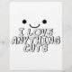 Een Kawaii-stijl gezicht, ogen en mond. Zwarte en witte tekst en tekening.