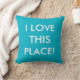 Je zult van ons hoge contrast houden, zwart-wit "Ik hou van deze plek!" decoratieve kussen. Deel de liefde!