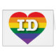 Deze kaart heeft een hart met een regenboogprideontwerp en de letters ID. Bovenop de regenboogstrepen, in het hart, zijn de vettige, witte hoofdletters ID, de officiële afkorting voor de staat Idaho, de gem staat. De kaart is leeg binnenin, wachtend op uw gepersonaliseerde tekst of handgeschreven sentimenten. Show je ware kleuren, steun huwelijksgelijkheid en viert homo-trots.