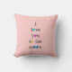 Ik hou van je bij de maan.... en rug (aqua op roze); kleurrijk Sierkussen; vooraan staat : Ik hou van je naar de maan (met kleurrijk hart). achterkant heeft de woorden "en terug" in een handgetekend aqua hart!