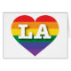 Deze kaart heeft een hart met een regenboogprideontwerp en de letters LA. Bovenop de strepen, in het hart zijn de vette, witte hoofdletters LA, de officiële afkorting voor Louisiana of Los Angeles. De kaart is leeg binnenin, wachtend op uw gepersonaliseerde tekst of handgeschreven sentimenten. Show je ware kleuren, steun huwelijksgelijkheid en viert homo-trots.