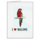 Een groene vleugelara wordt getoond met de tekst "Ik hou van ara"