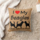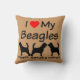 Dit aangepaste "I Love My Three Beagles" kussen is perfect voor iedereen die van drie Beagle-honden houdt, voeg gewoon je eigen hondennamen toe.