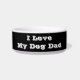 Pet Bowl eten en water container met zwarte achtergrond kleur en wit belettering kleur gedrukt met aanpasbare sjabloon tekst zin Ik hou van mijn hond papa op Petten, Shirten en huisdier producten door TheFabricSeal print on demand shop op Zazzle.com #ZazzleMade https://www.zazzle.com/store/thefabricseal Elk huisdier heeft een aangepaste kom van Zazzle nodig! Gedrukt met onze design of aangepast met uw favoriete foto's, tekst en design, zal uw huisdier dol zijn op onze 100% keramische kommen. Vaatwasser en magnetron goedgekeurd, deze kommen zijn gemakkelijk te houden. Twee maten zijn beschikbaar voor aankoop, medium en groot. Deze leuke petten, shirten en huisdierproducten laten je show hoeveel je van je emotionele en lichamelijke steun houdt om ouders en vrienden te helpen. Dit accessoire is een ideaal cadeau voor puppies en volwassen honden, mannen, vrouwen, tieners en kinderen die een puppy of schattige volwassen hond bezitten en houden. Als u de trotse eigenaar bent en u houdt van deze geweldige geweldige design en vrienden, dan zijn deze voor u plus u kunt deze aanvullen en overdragen aan ons enorme collectie andere producten die we aanbieden in onze POD-winkel in Zazzle. Geweldig voor het mengen en matchen van ontwerp- en productthema's. Bekijk ze allemaal. Bekijk onze 400 + geweldige originele design en product collecties uit onze Flagship Select Products Store en Neckties Store. Geweldige cadeau-selecties voor familie, vrienden en voor jezelf natuurlijk. Alles inclusief aanpassingsopties. Personaliseer met uw eigen ontwerp, monogram, naam, patroon, foto, citaat of slogan. Hartelijk dank voor het kiezen en winkelen met ons. Wij stellen uw steun op prijs. Geniet van je winkelervaring. Bestel vandaag nog.