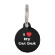 Huisdier ID Identificatietag Voor Katten En Honden met Zwarte Achtergrondkleur en Witte Letterkleur gedrukt met aanpasbare sjabloon tekst frase Ik ♥️ hou van Mijn Kattenvader op Mutsen, Truien en Huisdierproducten door TheFabricSeal print on demand winkel op Zazzle.com #ZazzleMade https://www.zazzle.com/store/thefabricseal