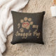 Voeg dit Pug accentkussen toe aan je interieur om te shows hoeveel je van je lieve Pug houdt. Het design in tan zegt I Love My Snuggle Pug. Het woord liefde wordt weergegeven door een rood hart op een tab poot print. Dit schattige Pug lover ontwerp is op een donkerbruin kussen. Dit kussen zal er geweldig uitzien in je huis. Het is ook perfect om cadeau te geven aan die speciale pug lover in je leven.