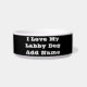 Voerbak voor huisdieren met zwarte achtergrondkleur en witte letterkleur bedrukt met aanpasbare sjabloontekst 'I ♥️ love My Labby Dog' en naam op petten, shirts en huisdierproducten van TheFabricSeal print on demand winkel op Zazzle.com #ZazzleMade https://www.zazzle.com/store/thefabricseal