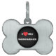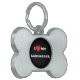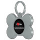 Huisdier-ID-identificatietag in de vorm van een bot met zwarte achtergrondkleur en witte letterkleur bedrukt met aanpasbare sjabloontekst I ♥️ love My Labradork op petten, shirts en huisdierproducten door TheFabricSeal print on demand winkel op Zazzle.com #ZazzleMade https://www.zazzle.com/store/thefabricseal